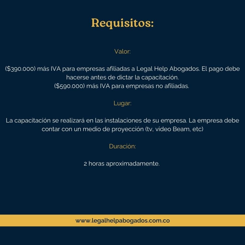 Valor ($380.000) más IVA para empresas afiliadas a Legal Help Abogados.